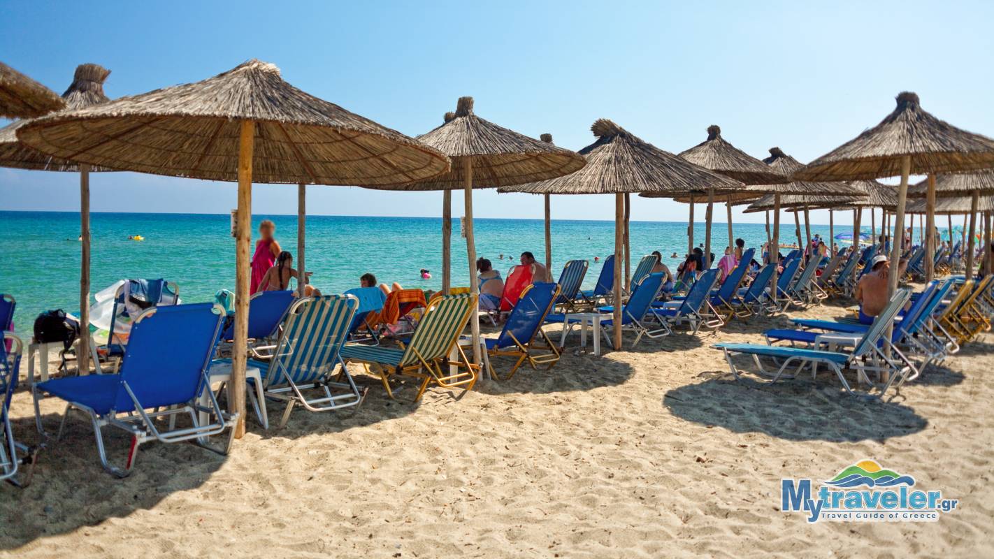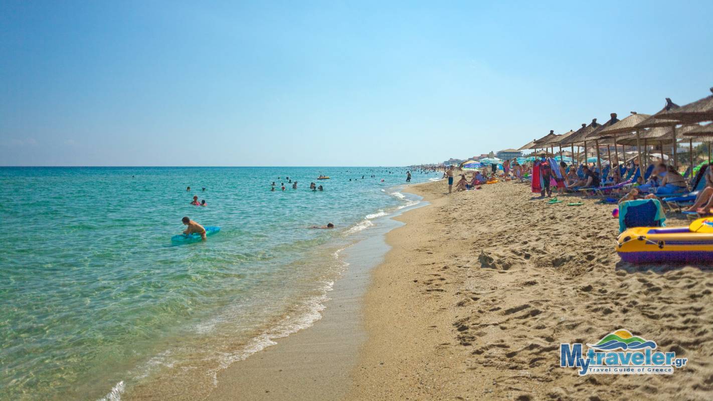Μεγάλη αμμώδης ακτή με κρυστάλλινα νερά και θέα τον Όλυμπο. Παραλία πάρα πολύ καλά οργανωμένη, ιδανική για οικογενειακές διακοπές. Ιδανική για θαλάσσια σπορ. Πολύ κοντά στην παραλία θα βρείτε καφέ, ταβέρνες και οτιδήποτε άλλο μαγαζί ή υπηρεσία που μπορεί να θελήσετε.