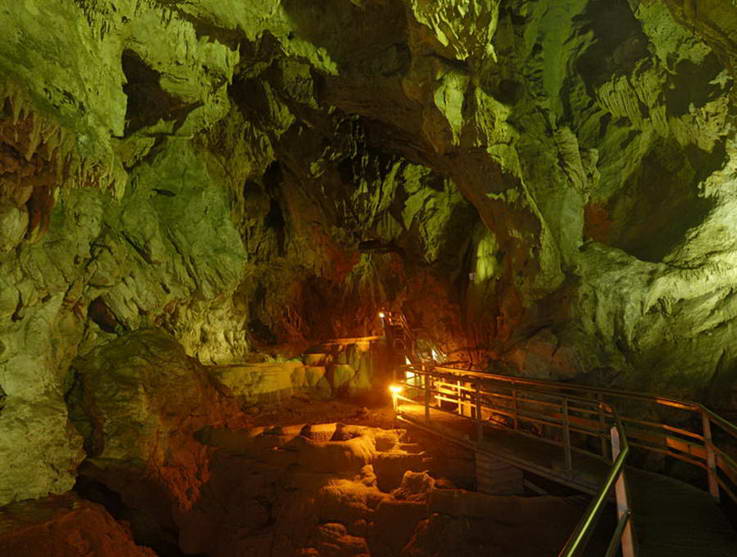 Ο επισκέπτης μπαίνει στο σπήλαιο από τεχνητή σήραγγα, που καταλήγει κατ' ευθείαν στο δεύτερο όροφο. Οι διαστάσεις του τμήματος αυτού προκαλούν δέος, έκσταση, θαυμασμό. Η διάβαση των λιμνών γίνεται από υπερυψωμένες τεχνητές γεφυρούλες.