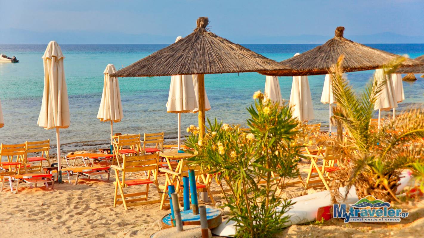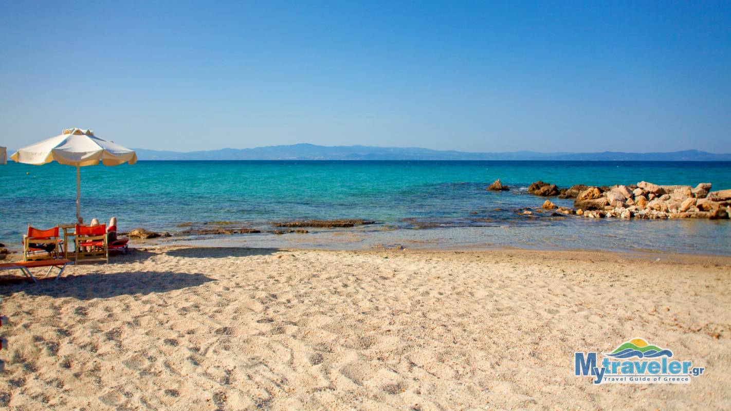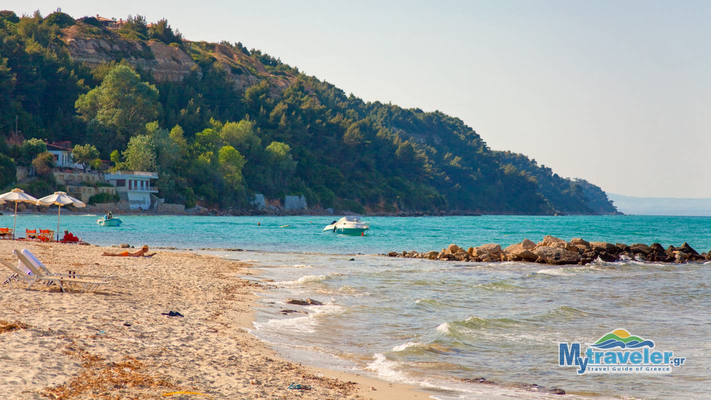 The beach is sandy and the waters are clear. Also it has lots of natural vegetation and a view to the natural port.