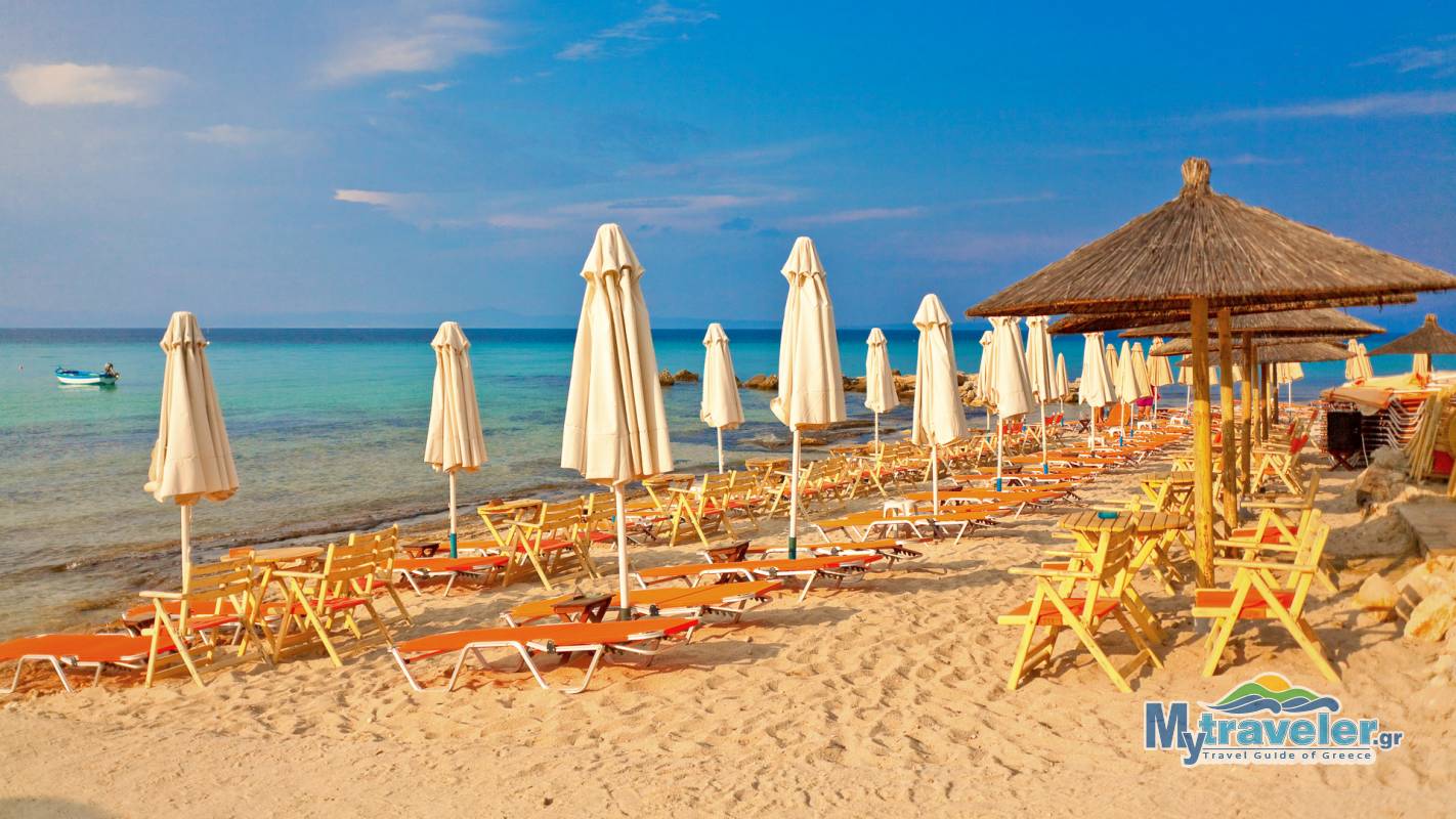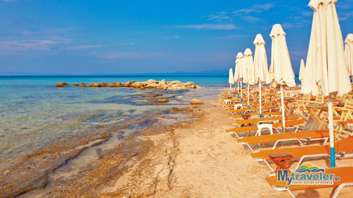 There are beach bars, sea beds and umbrellas. On various spots there are rocks in the water. Be careful because they are slippery and also because there might be a small urchin between them. The sea deepens abruptly.