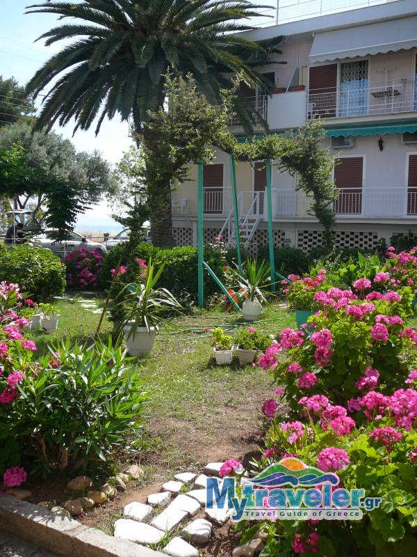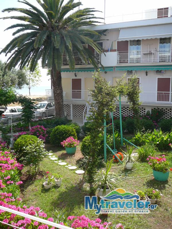 In front of the beach, 25 meters fromthe shore of the majestic Nea Potidea in Kassandra, Halkidiki, only 60 km from the airport Macedonia, are locatedthe spacious, furnished apartments"Juli", with 3 and 4 beds (two bedrooms), WC-bathroom, fullyequipped kitchen, air-condition , free internet access, TV and a large terracein a lush garden overlooking the sea.