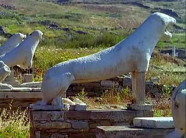 To the north from a sanctuary on the western coast of Sacred lake (nowadays drained) there was a Terrace of the Lions, on which nine marble statues of lions towered. Today the island is protected still by remained 5 of 9 Delian lions.