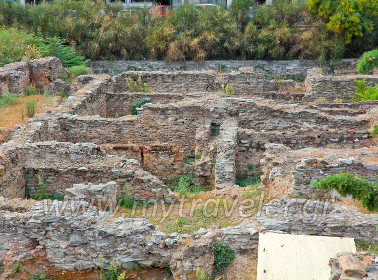 In the area of Plateia Dioikitiriou - in the historical center of Thessaloniki - a building square of the city has been discovered with evidence of habitation covering a wide chronological span from Hellenistic to post-Byzantine times. This is the only such architectural unit known in the city. It is strikingly well preserved with building walls standing to a height of 2.80 meters (~9 feet). This urban island lies to the east of a Roman road, 6 meters (~20 feet) wide, which formed one of the main arteries of the perpendicular road network of the city. To date, a dense network of drainage and water supply channels of various types has been found, including the earliest drainage system of Roman times with a stone built vaulted covering.