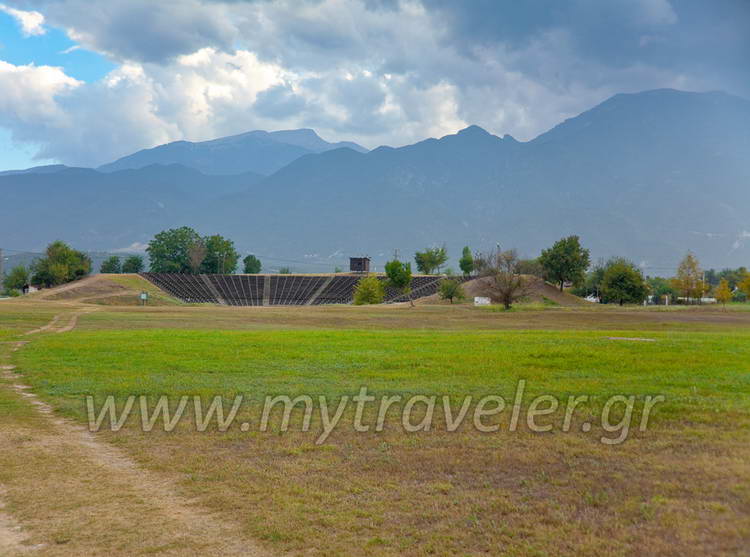 The Hellenistic theatre of Dion, which lies outside the walls, was built in the reign of Philip V (221-179 B.C.). The Roman theatre, dating from the 2nd c. A.D., has been identified south-east of the Hellenistic structure. The cemetery of Dion extents mainly to the south and east of the city. The funerary monuments date from the 5th c. B.C. to the 5th c. A.D. During Early Christian times the city contracted and the central area was occupied by an Early Christian Basilica dating from the late 4th c. A.D. Dion appears to have been abandoned during the 5th c. A.D. as a result of natural disasters (earthquakes, floods), its inhabitants moving to safer areas in the foothills of Mount Olympus.
