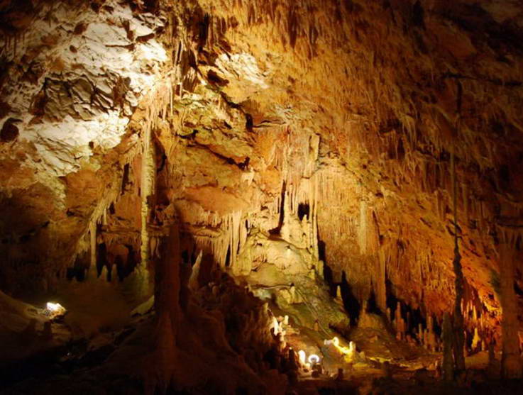The cave began to be formed hundreds of thousands of years ago. The stalactites and stalagmites that are now beneath the water were formed when the sea level was much lower than it is today. Stalactites have been found at a depth of 71 meters. The water that seeps into cracks in the limestone bedrock dissolves it. Drop by drop the deposits of dissolved carbonated limestone gradually form stalactites and stalagmites to create the wonderful spectacle we see today. The water in the cave is brackish and very hard. Its temperature is about 14 degrees centigrade, while the temperature of the air in the cave ranges from 16-19 degrees centigrade.