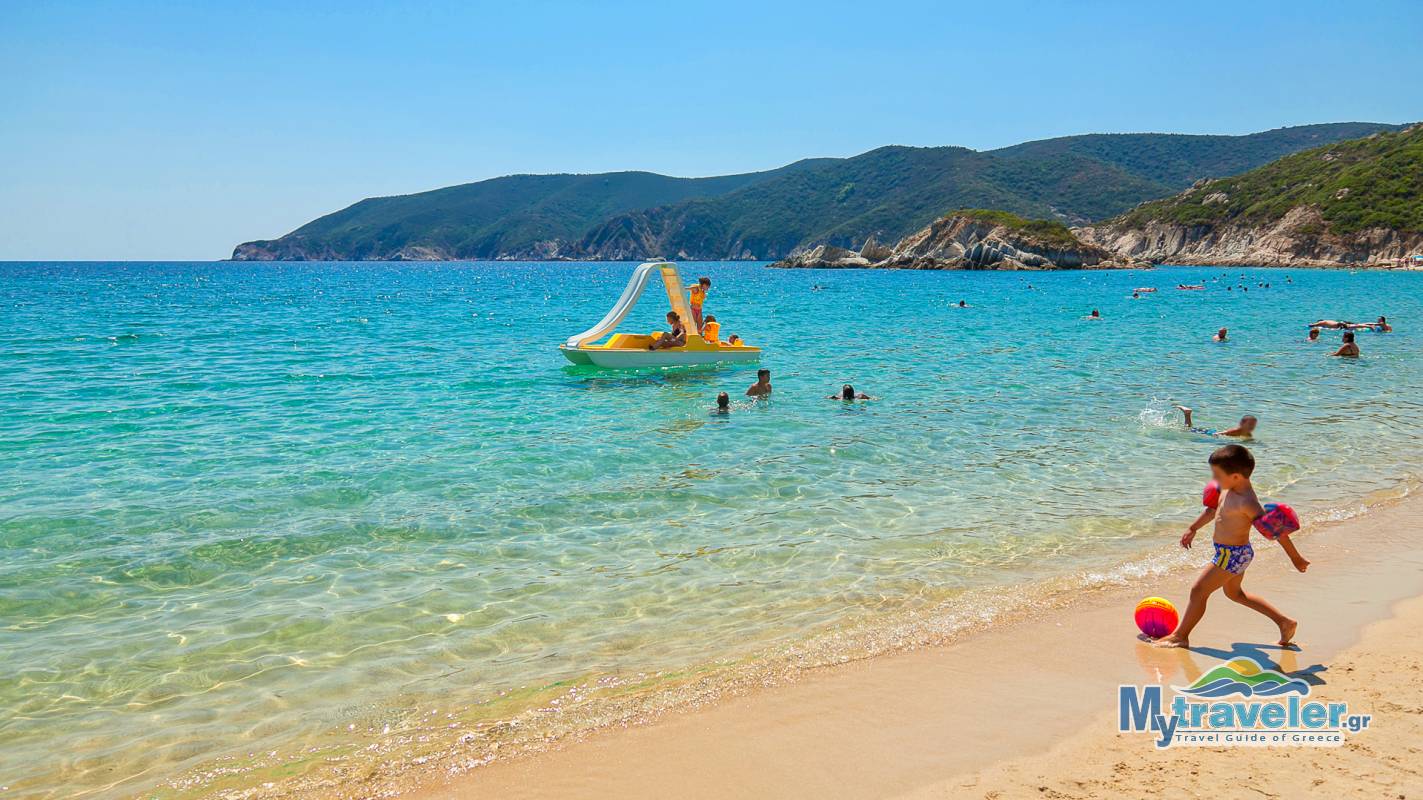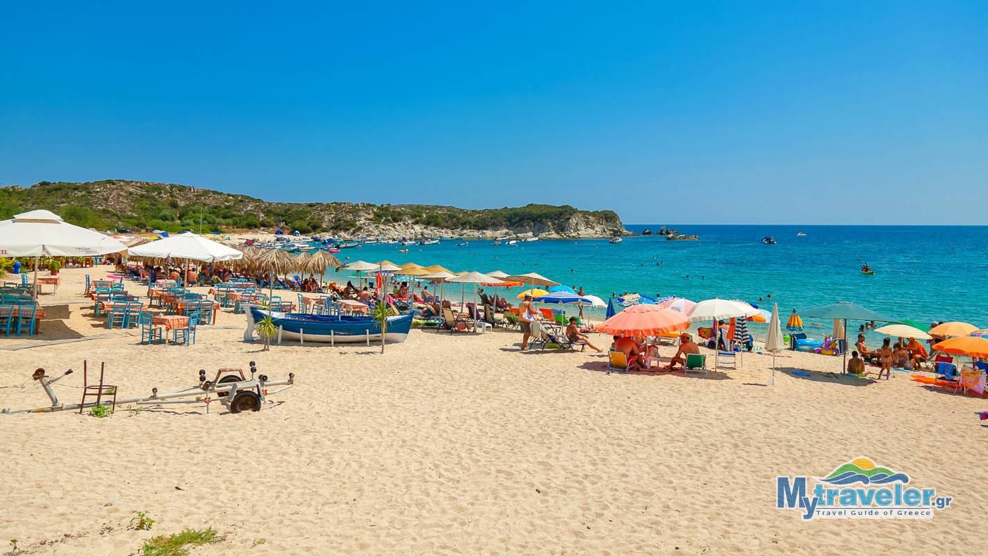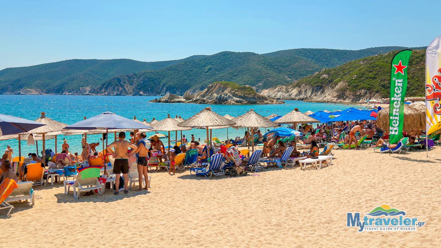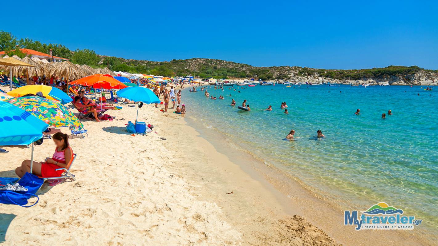 This bay is impressive due to the skerry that is part of the scenery there. It's a tourist attraction with beach bars and a camping that is named after the beach.
