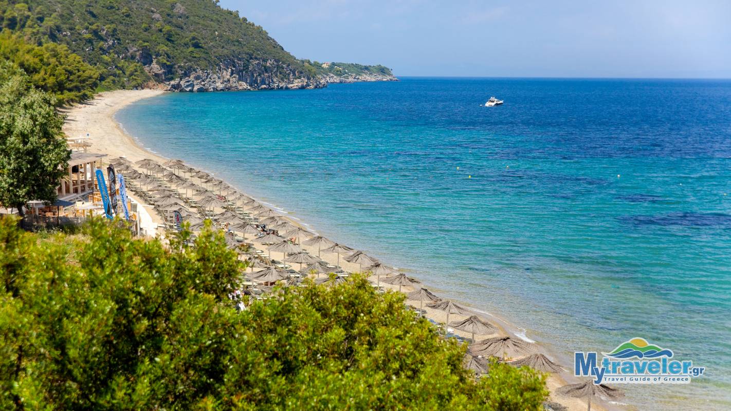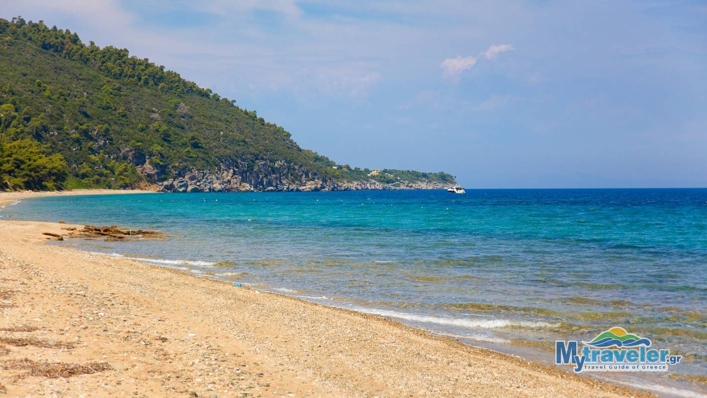 Near the eastern part of the peninsula you can find a beach which is a favorite spot for the lovers of free camping. Over the rocks you can enjoy the a full view of the Aegean sea.