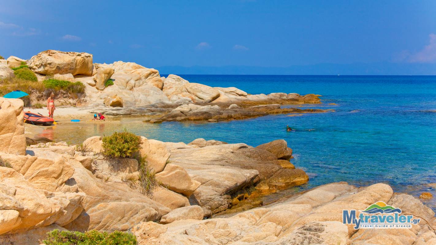 Very beautiful, quiet and small beach with white soft sand and turquoise colored waters. You can find various shaped rocks and small bays adequate for two persons.
