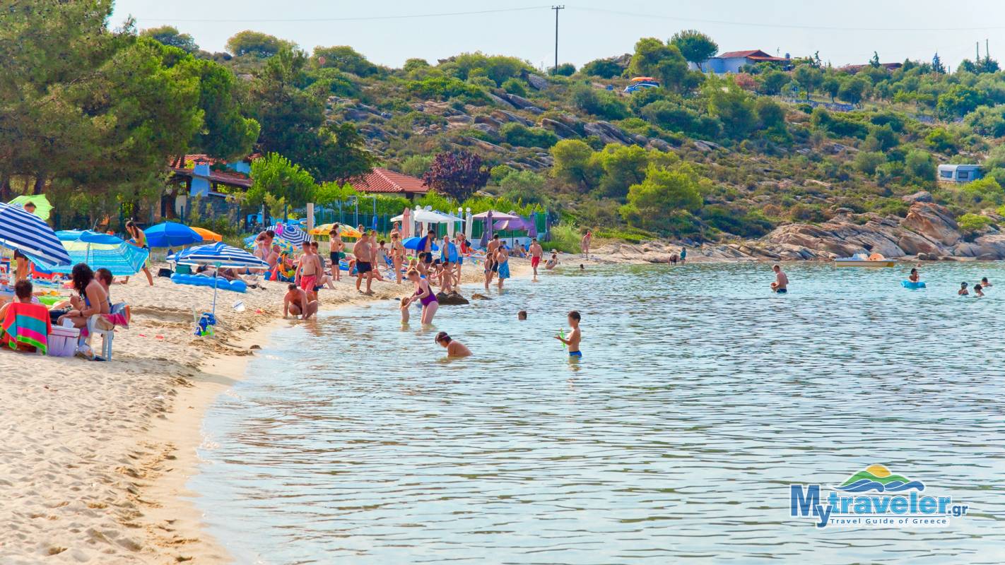 A beautiful beach with crystal clear blue -green waters. A bay with rocks in the side. Its situated about 1 km from Ormos Panagias.