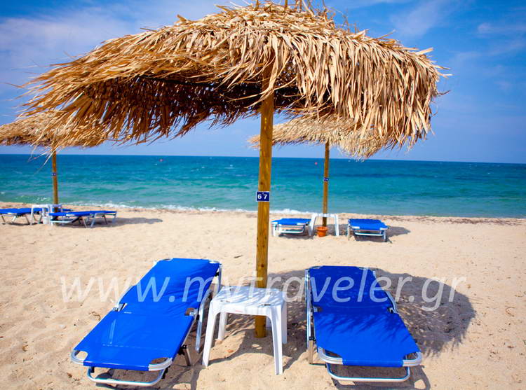 It is a spacious sandy beach with crystal clear water. Although not very organized this doesn't mean you can't find some spots where you can enjoy a meal by the sea.