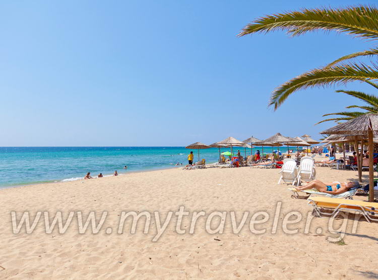 A big sandy beach with very clear waters, well equipped with beach bars and a lot of activities for the visitors. It is ideal for families and young children. In a few minutes' walk you can find many restaurants, bars and many more. Just what you need for successful holidays.