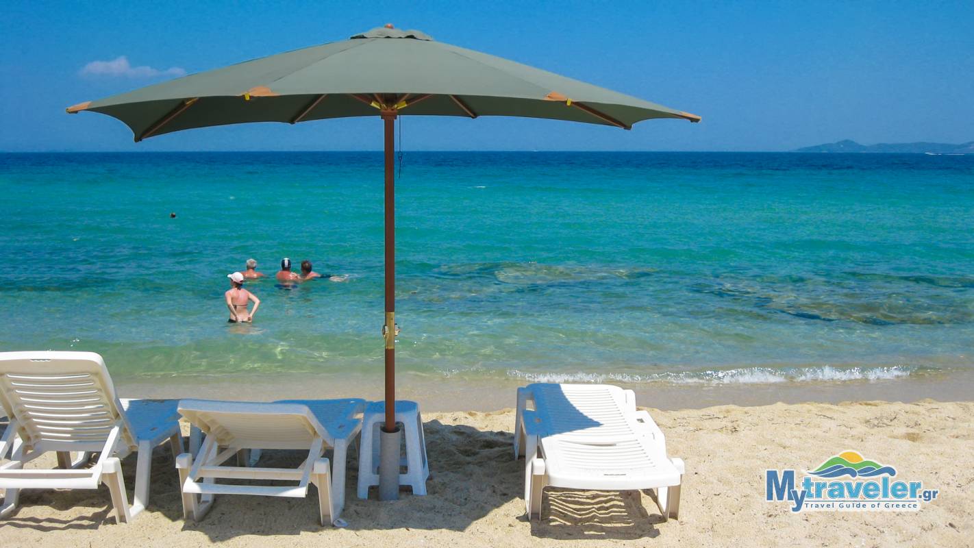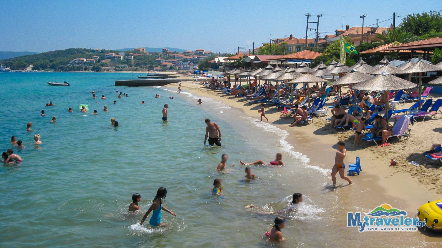 A very good organized beach in front of the local settlement with a beach bar. Its big, sandy, with clear blue waters. Ideal place for water sports. Near the beach you can find beach bars, coffee shops etc.