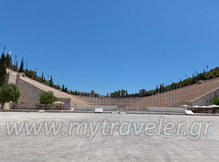 It was originally a natural hollow part of the ground between the two hills of Agra and Ardettos, over Ilissos river. It was transformed into a stadium by Lykourgos in 330-329 BC for the athletic competitions of the Great Panathinaea Festivities. Between 140 and 144 AD, Herodes Atticus restored the Stadium, giving it the form that was found at the 1870 excavation: the horseshoe construction with a track 204,07 meters long and 33,35 meters wide. It is believed that the Stadium had a seating capacity of 50.000 people. Separating scales were built between the tiers and on the base of the sphendone there was a portico with Doric-style columns; another portico was placed in the stadium's facade. Herodes possibly restored also the Ilissos river bridge on the Stadium's entrance, making it larger and adding three archways on its base. The bridge was standing there up to 1778 and a part of it was excavated in 1958. At the Roman times, the Stadium was used as an arena, with the addition of a semi-circular wall on the north that was corresponding to the sphendone of the southern side.