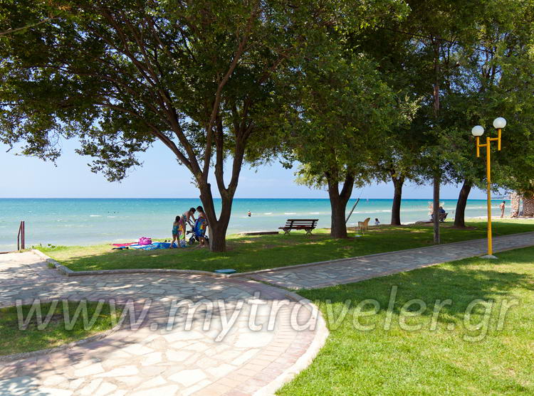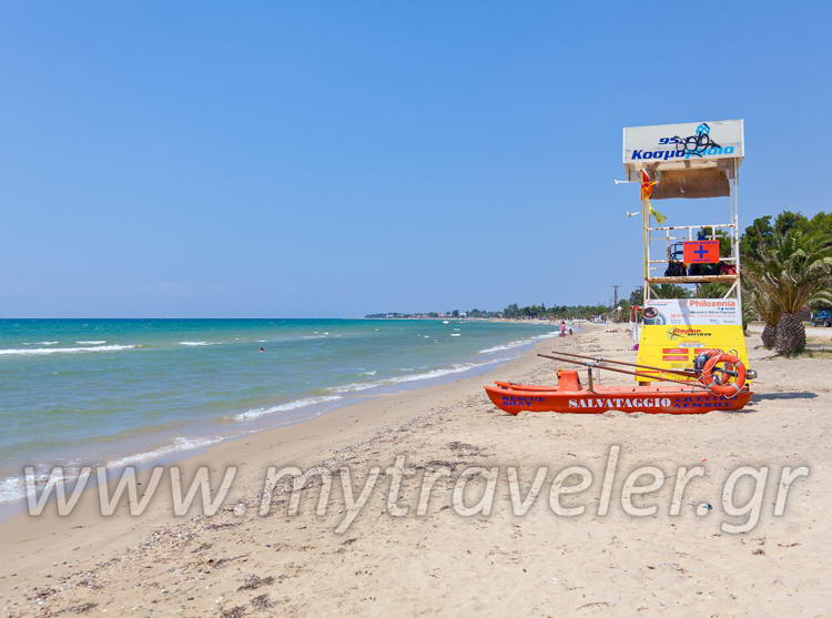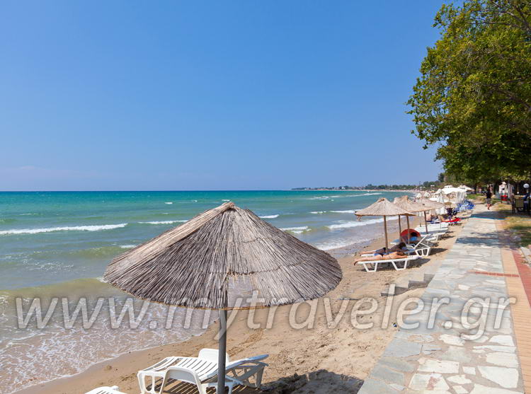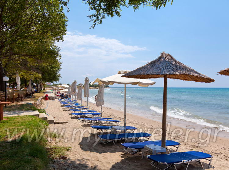 A sandy beach with very clear waters. Here on the beach you can play beach volley, enjoy your drink in the bar or visit the near restaurants.