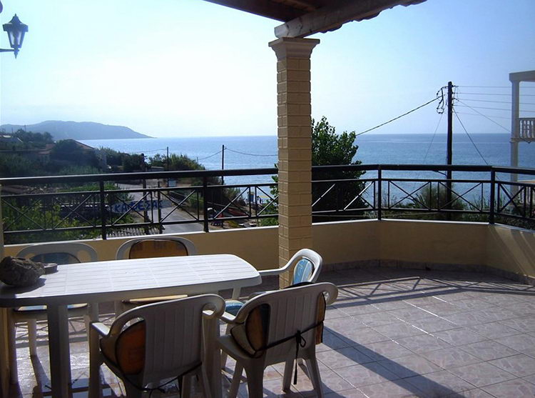 Από τη μεγάλη βεράντα του οι επισκέπτες μπορούν να απολαύσουν την εκπληκτική θέα στη θάλασσα και στα αξέχαστα ηλιοβασιλέματα, πίνοντας ένα φλιτζάνι τσάι το απόγευμα ή ένα cocktail. Ή βεράντα είναι εξοπλισμένο με 2 ξαπλώστρες, καθώς και με ένα πλαστικό τραπέζι με καρέκλες.