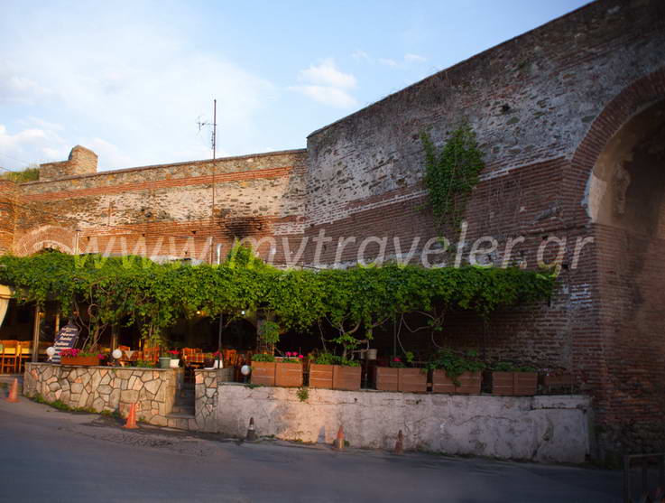 There are fine panoptic views of modern Thessaloniki and the Thermaic Gulf from the Byzantine walls above the houses.