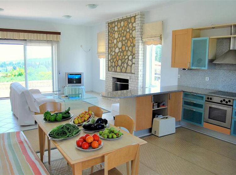Αυτή η όμορφη βίλα μπορεί να φιλοξενήσει μέχρι δώδεκα (12) άτομα, αλλά άνετα έως οκτώ, καθώς διαθέτει τέσσερα δίκλινα δωμάτια, όλα εξοπλισμένα με ντουλάπες, ένα διπλό καναπέ-κρεβάτι στο καθιστικό και ένα διπλό καναπέ-κρεβάτι στην κουζίνα. Η κύρια κρεβατοκάμαρα βρίσκεται στον πάνω όροφο και διαθέτει ένα διπλό κρεβάτι, μπάνιο και μπαλκόνι. Δύο ακόμη κρεβατοκάμαρες βρίσκονται δίπλα και διαθέτουν δύο μονά κρεβάτια. Υπάρχει μια ελκυστική, πλήρως εξοπλισμένη κουζίνα εξοπλισμένη με τζάκι, τηλεόραση και DVD player.