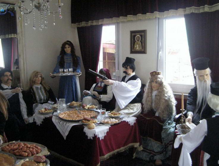 Εντυπωσιακή είναι η αναπαράσταση του παραδοσιακού γάμου με τα κέρινα ομοιώματα του γαμπρού, της νύφης, του παπά, της μουσικής κομπανίας, του φωτογράφου, κ.α. Εξίσου εντυπωσιακές είναι και οι κέρινες μορφές των προϊστορικών ανθρώπων, που κατοικούσαν πριν χιλιάδες χρόνια και ψάρευαν στη λίμνη της Καστοριάς. Στο Μουσείο υπάρχει ακόμη ένα ολόκληρο χωριό με αναπαραστάσεις μαγαζιών της παλαιάς εποχής, μαζί με τα κέρινα ομοιώματα των επαγγελματιών που τα επάνδρωναν και τα λειτουργούσαν καθώς και ένα β' κτίριο- πολιτιστικό κέντρο πολλαπλών δραστηριοτήτων.
