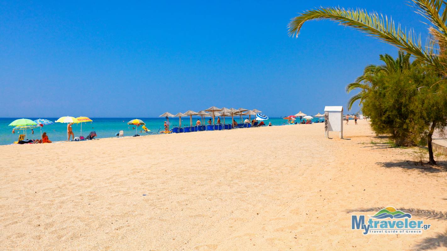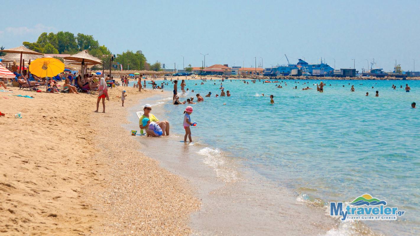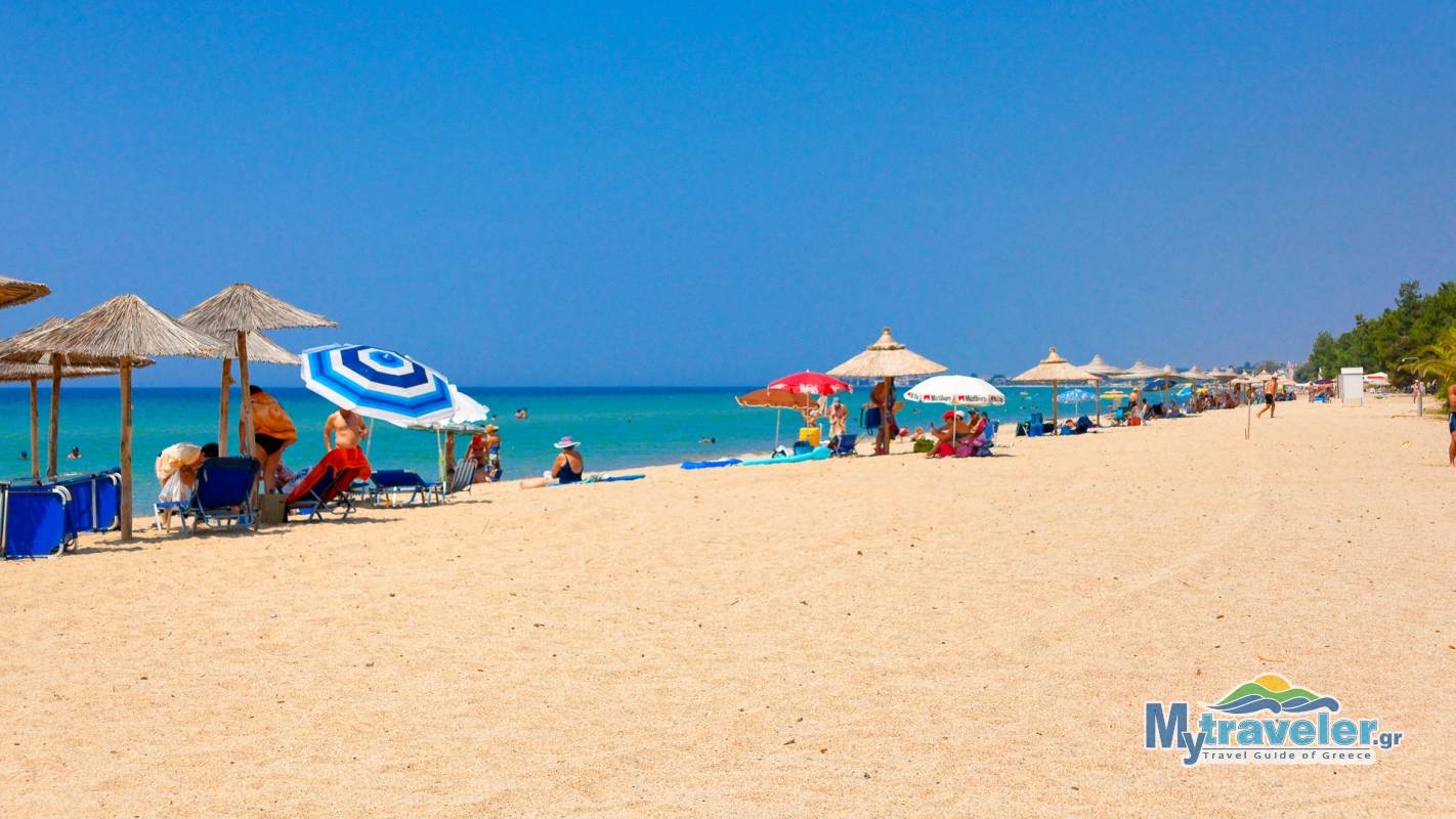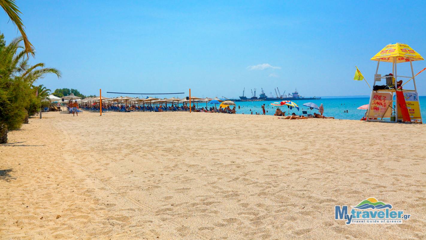 Μεγάλη αμμώδης παραλία, που εκτείνεται από την παραλία των Νέων Μουδανιών  μέχρι τη παραλία Διονυσίου. Μια παραλία όπου μπορείτε να βρείτε ξαπλώστρες, ομπρέλες, μπαρ, καφετέριες και εστιατόρια σε κοντινή απόσταση. Δυνατότητα για θαλάσσια σπορ.