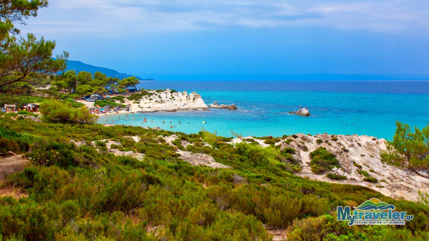 Οργανωμένη αμμώδες παραλία με λευκά βράχια. Εδώ θα βρείτε ξαπλώστρες και ομπρέλες.Σήμα κατατεθέν της είναι μια τεράστια γοργόνα από... βράχο, την οποία έχει σκαλίσει κάποιος ανώνυμος καλλιτέχνης.