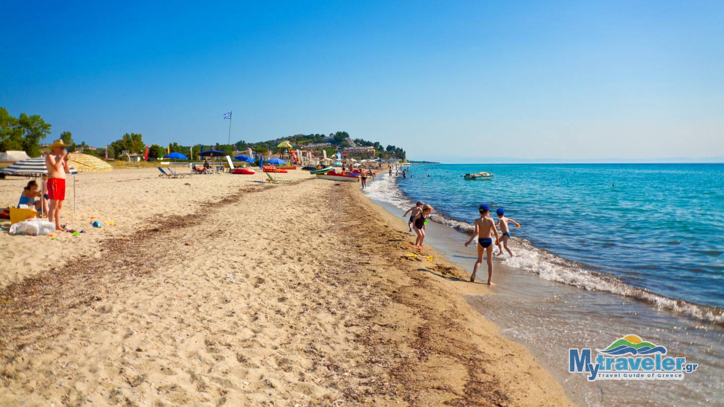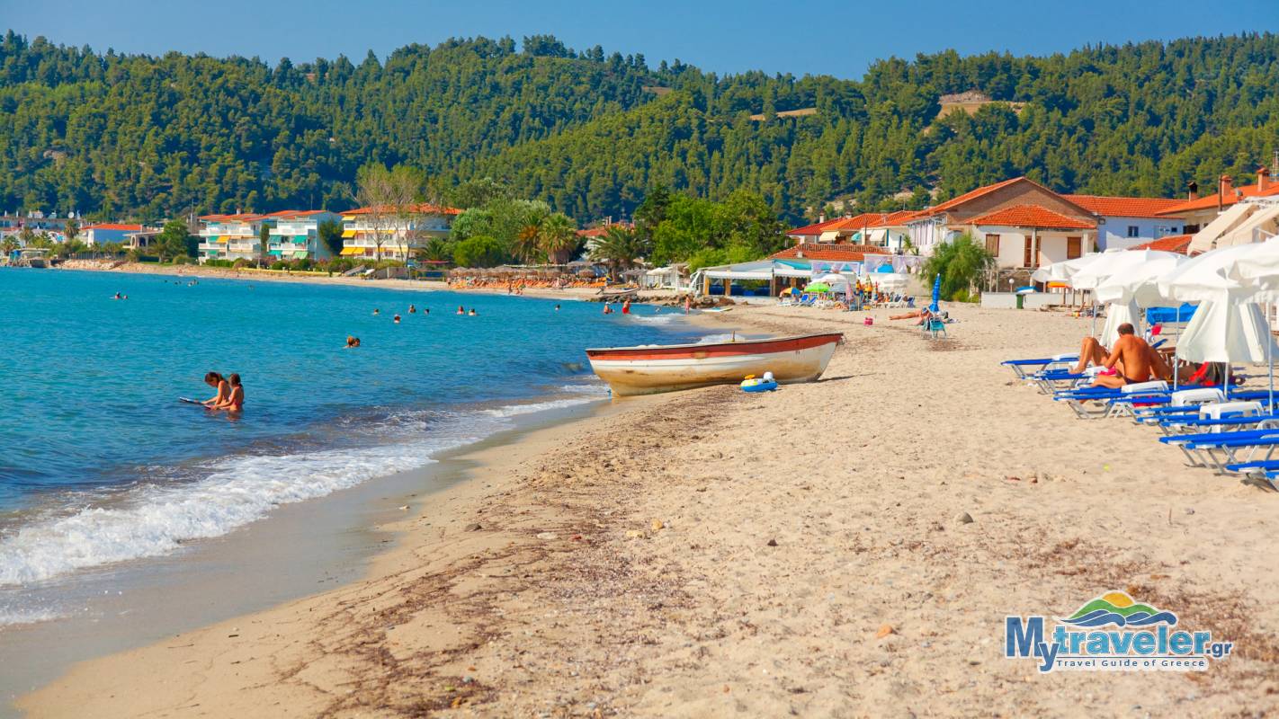 Λευκή αμμουδιά με καθαρά νερά, με φόντο τους καταπράσινους λόφους. Φημισμένη για τα μοναδικά ηλιοβασιλέματα. Σε κοντινή απόσταση υπάρχουν ταβέρνες, εστιατόρια, καφετέριες ....