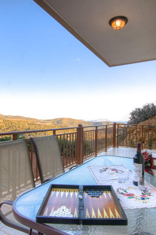 Οι δύο βίλλες είναι χτισμένες σε μια κορφή τεσσάρων στρεμμάτων και απέχουν 2χλμ από την παραλία της Τριόπετρας. Η καθεμιά από αυτές αποτελείται από 100τ.μ κατοικήσιμου χώρου, που μπορούν να στεγάσουν με πολυτέλεια(μοντέρνες εγκαταστάσεις)έως 6 άτομα.