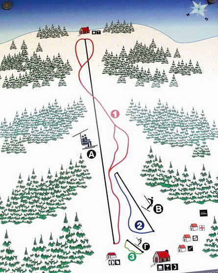 Здесь есть три трассы различной степени сложности: одна трасса для начинающих - 80м, другая среднего уровня сложности - 400м и трасса для опытных лыжников - 1500м. и три вида подъемников: канатно-кресельный двуместный, бугельно-буксировочный одноместный и беби-лифт.