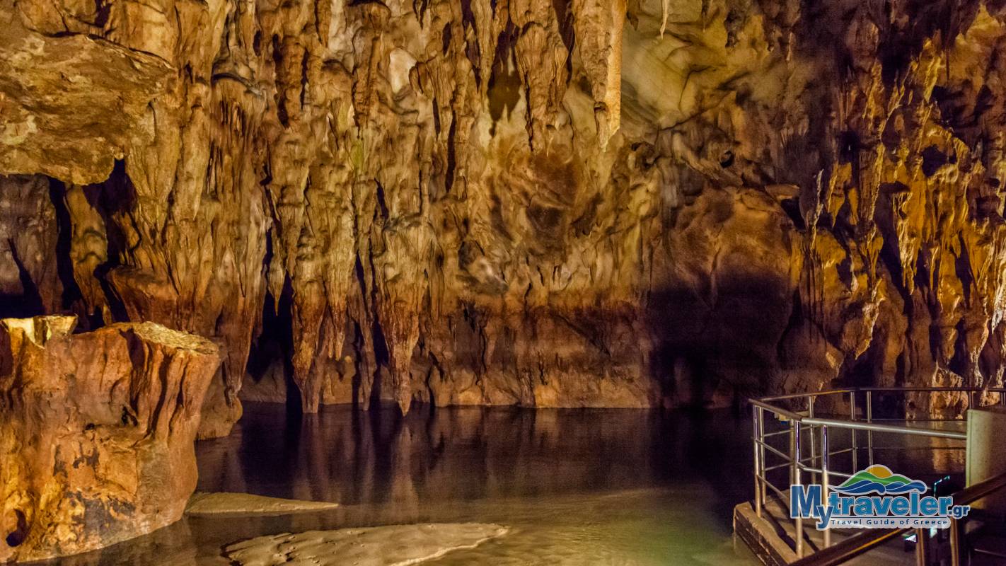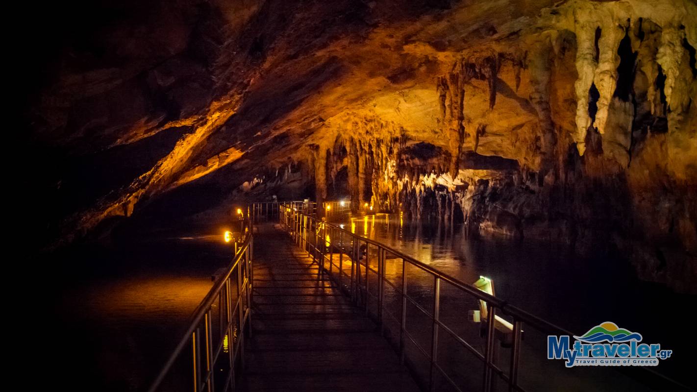 Это уникальная пещера, вторая по длине из посещаемых пещер Греции, с разнообразными, красочными сталактитами, сосуществующими в гармонии с подземными водами реки.