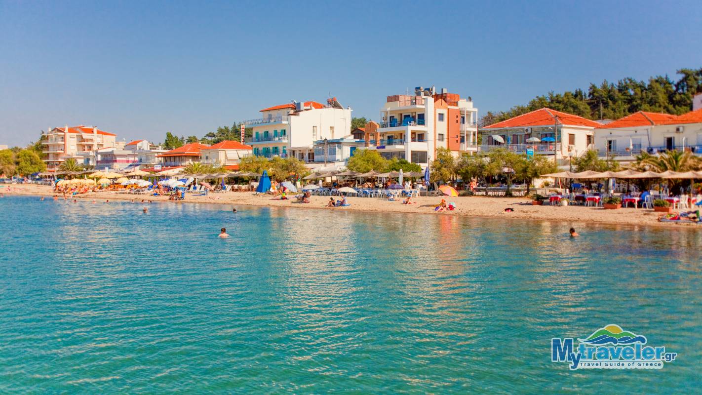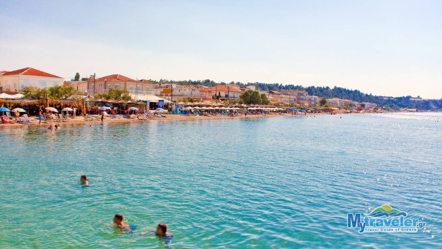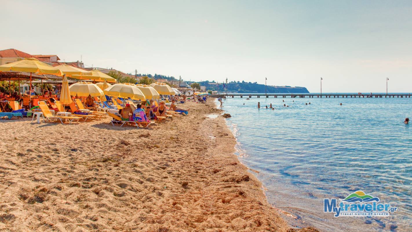Длинный обустроенный песчаный пляж с кристально чистой водой. Рядом вы найдете бары, рестораны, таверны и всё что нужно для хорошего отдыха.