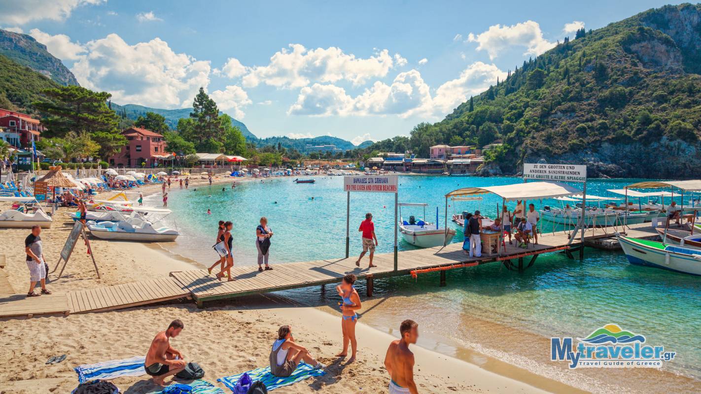 Агиос Спиридонас - красивый песчаный пляж, самый большой из всех пляжей Палеокастрицы. Вода здесь кристально чистая и изумительного цвета, но довольна прохладная.