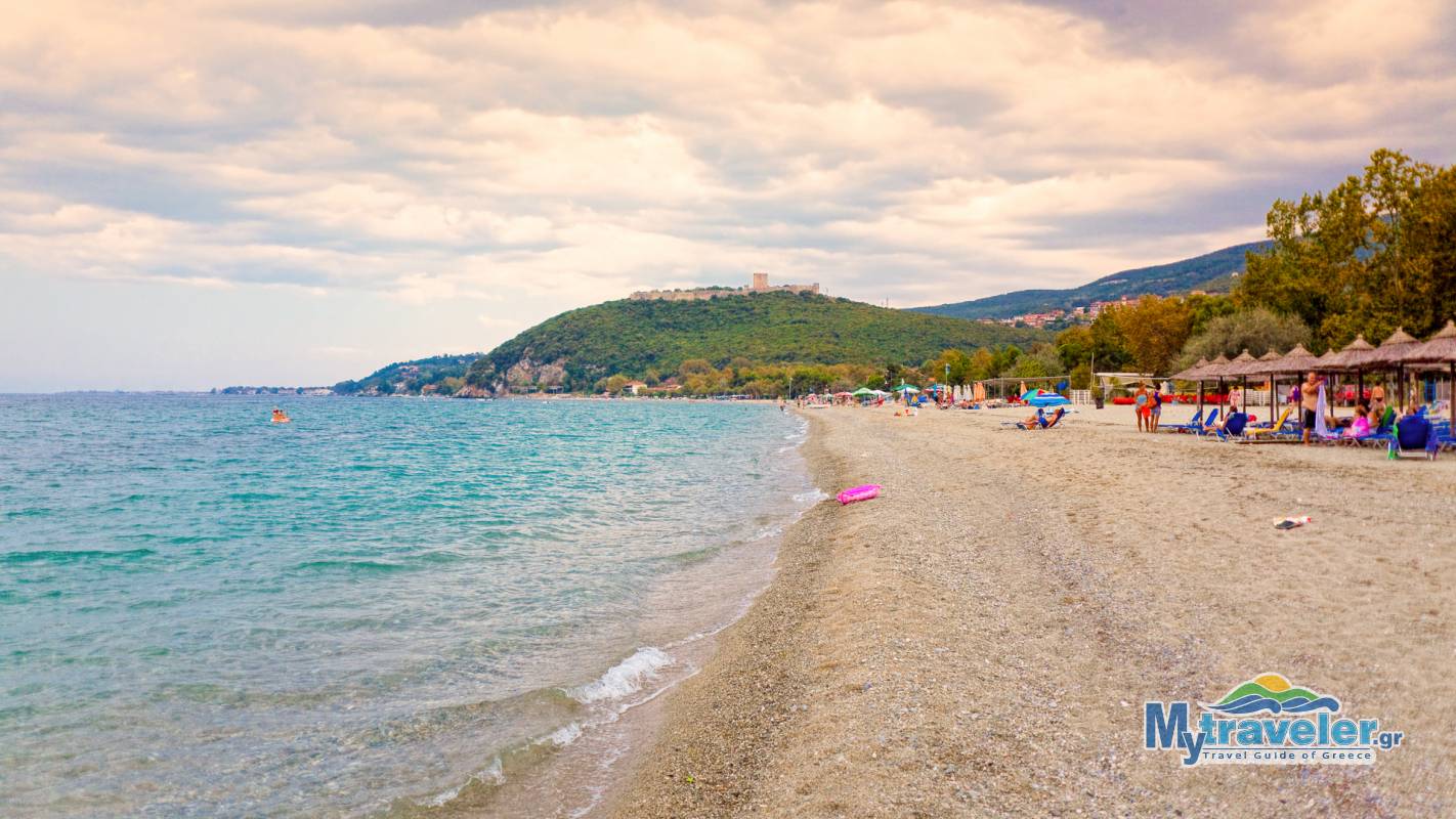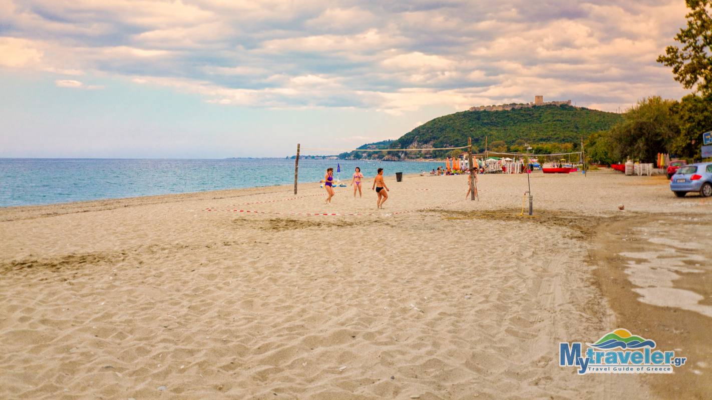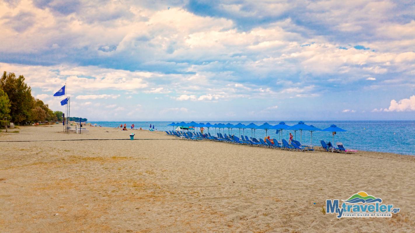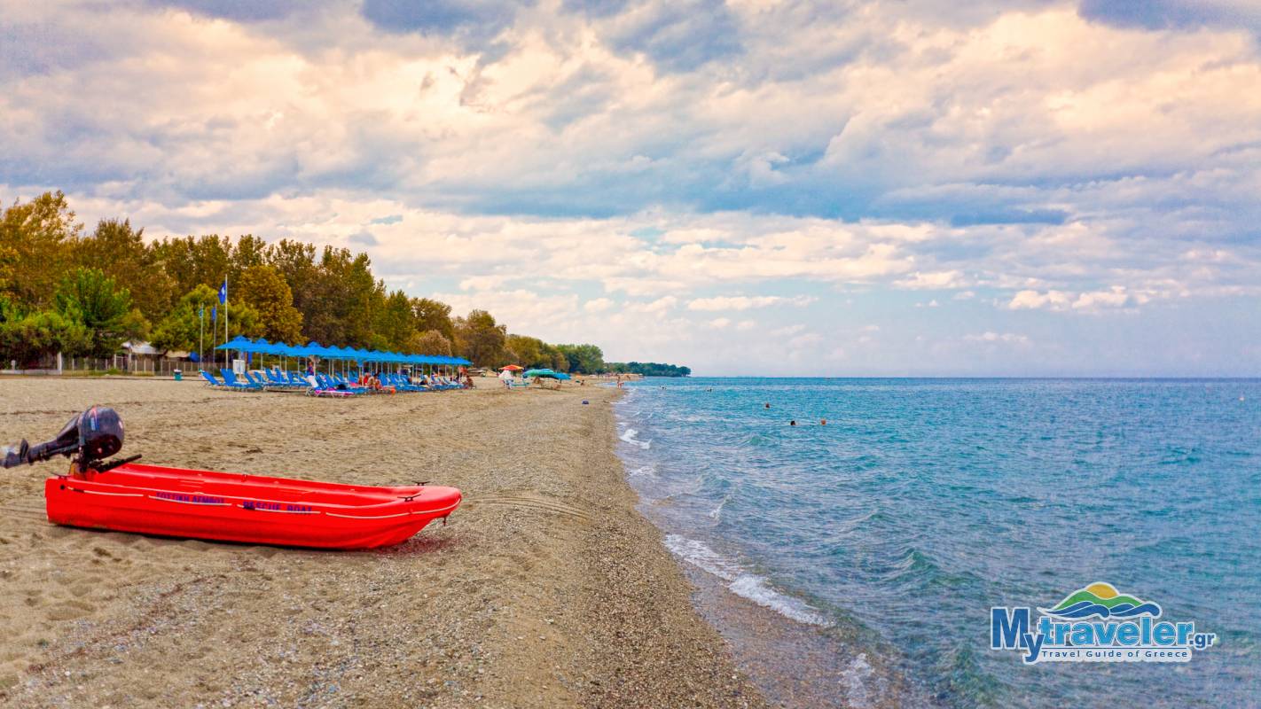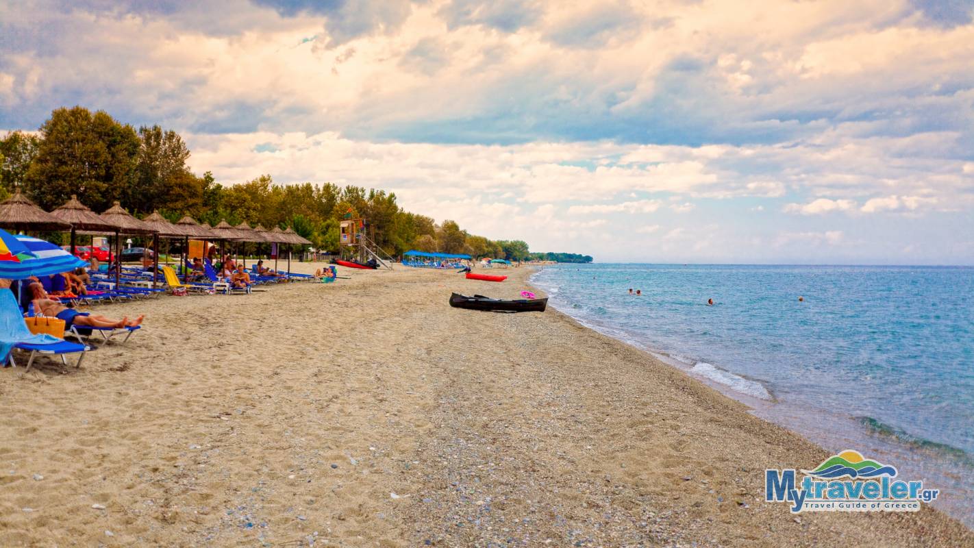 Очень красивый пляж, расположенный в предгорьях горы Олимп, сочетающий гальку и песок, с кристально чистой водой и пышной растительностью вокруг. Организованный пляж, идеален как для семейного отдыха, так и для любителей активного отдыха. Пляж идеально подходит для водных видов спорта, и есть площадки для баскетбола, теннисного корта, настольного тенниса, пляжного волейбола.