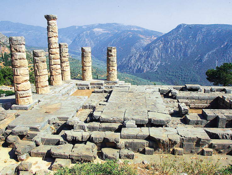 Храм Аполлона - один из важных памятник в Дельфах. В древности в храме были размещены статуи богов , куда приносились жертвенные дары. Это место, где совершались ритуалы и наиболее важным из них было пророчество. Согласно легенде, первый храм Аполлона в Дельфах был построен из ветвей лавра, второй был сделал из пчелиного воска и перьев, третий из меди, а четвертый был построен легендарными архитекторами -это были Агамидис и Трофониос, которым помогал сам Аполлон.